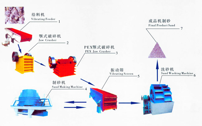 制砂生産(chǎn)線設備(bèi)流程圖如下: