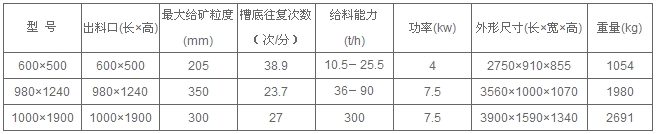 槽式給料機可以架設於地面,也可以吊裝在礦倉 卸料口上。槽底闆作往複運動,其沖次爲20-60次/min,沖程爲20-200mm。沖程可由驅動裝置偏心輪進行适當調整,偏心距爲沖程之半。據一些選礦廠生産實踐,對於粘性礦石,偏心距不應小於30mm。槽式給料機的槽體寬度約爲給料*大粒度的2-2.5倍 。*大的槽式給料機,可滿足小於500mm粒度鐵礦石的給礦 。*常選用的規格是980*1240槽式給料機,其給料粒度爲350-0mm,适於作爲400*600鄂式破碎機的給料設備。